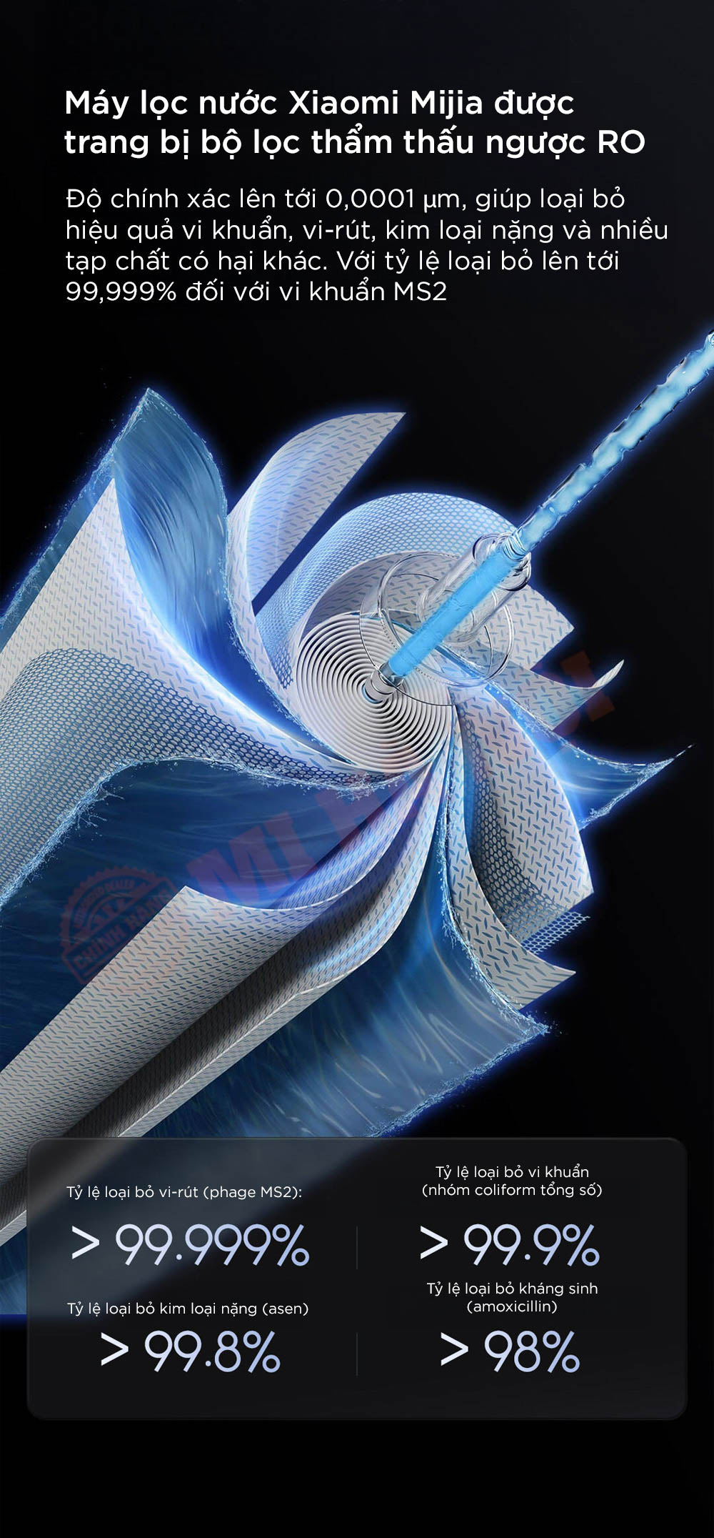 Máy lọc nước Xiaomi Mijia là lựa chọn hoàn hảo cho những gia đình đề cao sức khỏe và chất lượng sống hiện đại. Sản phẩm nổi bật với hệ thống đường ống được nâng cấp toàn diện, kết hợp công nghệ làm sạch năng động sáng tạogiúp loại bỏ tạp chất, vi khuẩn và kim loại nặng, mang đến nguồn nước tinh khiết an toàn tuyệt đối.