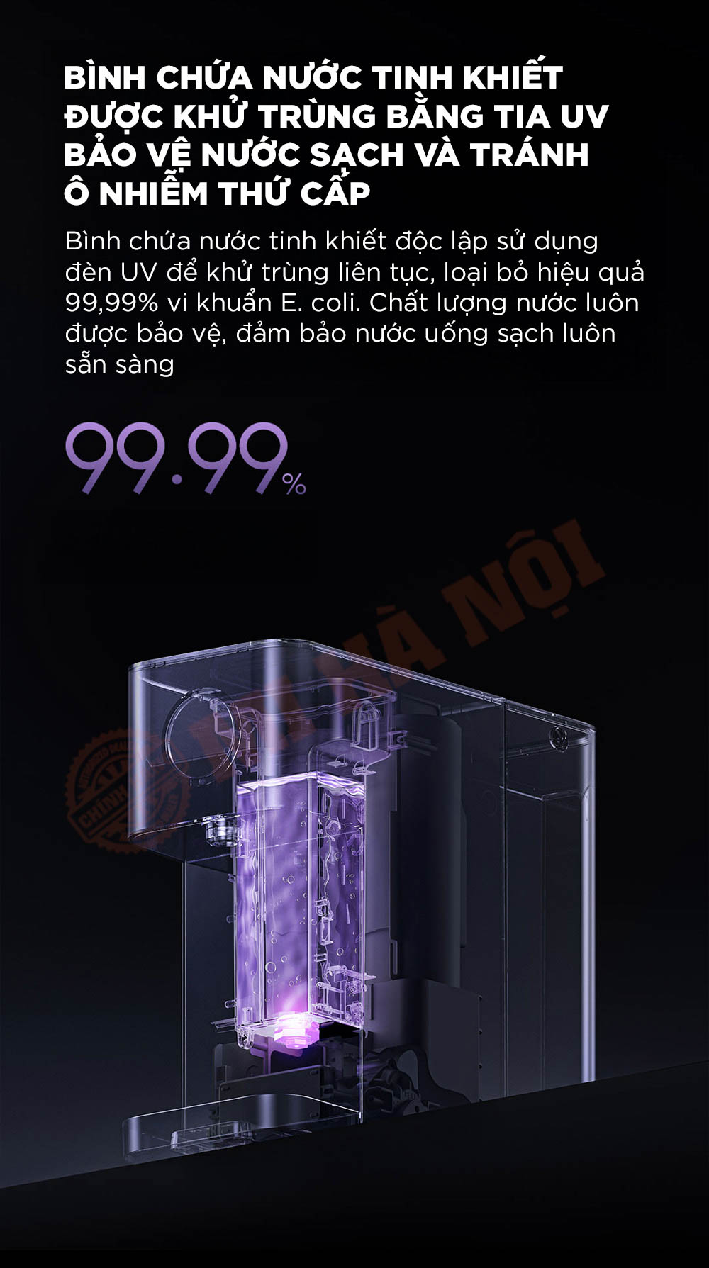 - Bình chứa nước tinh khiết khử trùng bằng tia UV lâu dài, ngăn ngừa ô nhiễm thứ cấp, duy trì chất lượng nước tinh khiết tuyệt đối.