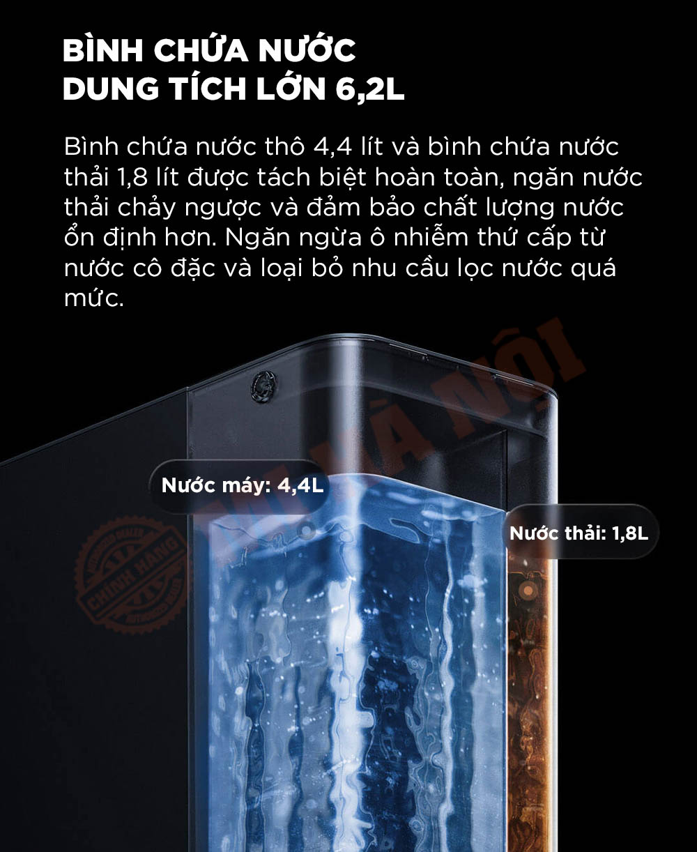 - Thiết kế tiết kiệm nước thông minh, lượng nước thải ít hơn so với các dòng máy lọc thông thường.