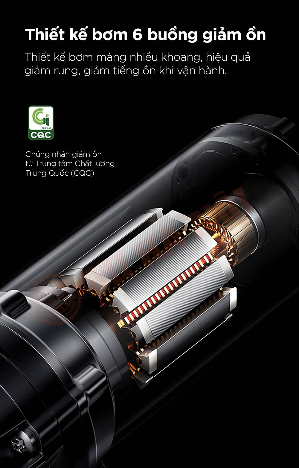 - Bơm 6 buồng giảm ồn, lấy nước ban đêm êm ái, không làm phiền giấc ngủ.