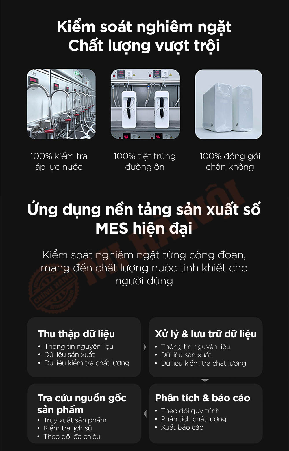- Kiểm soát chất lượng nghiêm ngặt từ linh kiện đến thành phẩm, đảm bảo nước đầu ra luôn an toàn.