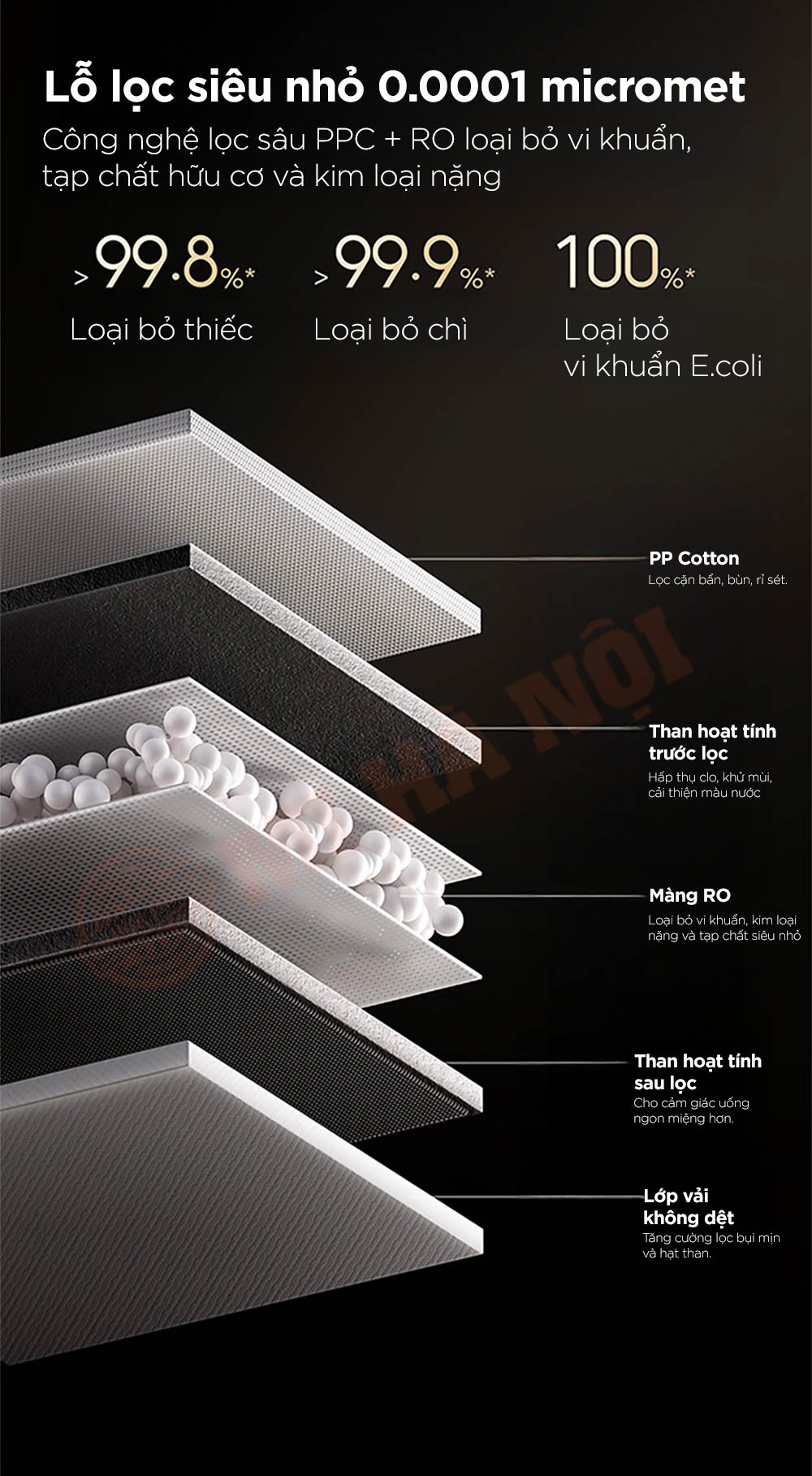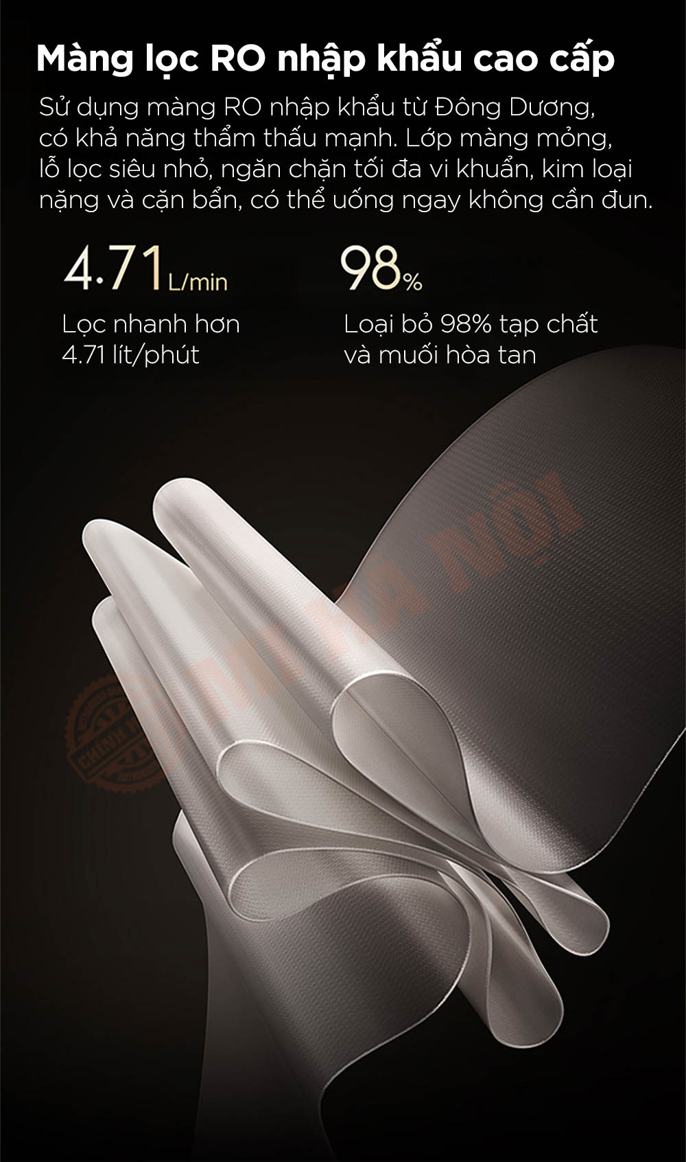 - Màng lọc RO nhập khẩu lọc sạch vi khuẩn, kim loại nặng và tạp chất, cho nước tinh khiết vượt trội.