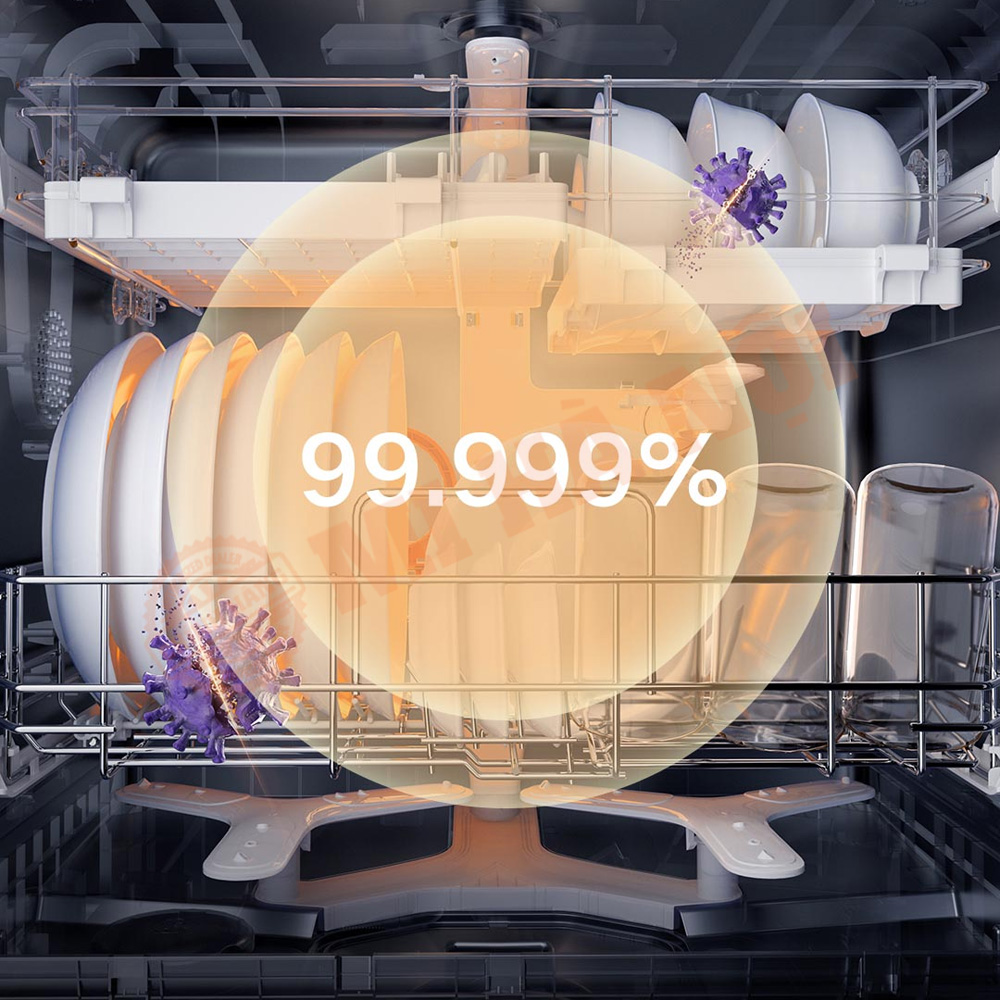 Xiaomi Mijia S2 sở hữu khả năng khử trùng và làm sạch bát đĩa đạt chuẩn chăm sóc mẹ và bé, được kiểm chứng bởi các chuyên gia. Tiệt trùng bằng tia UV tiêu diệt hoàn toàn vi khuẩn, có thể kích hoạt qua ứng dụng Mi Home, giúp bảo quản bát đĩa khô ráo trong nhiều giờ liên tục, ngăn ngừa vi khuẩn sinh sôi.