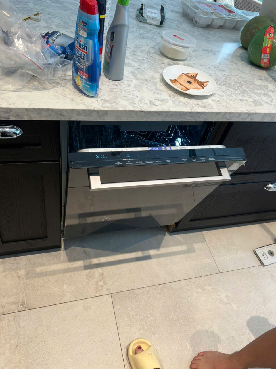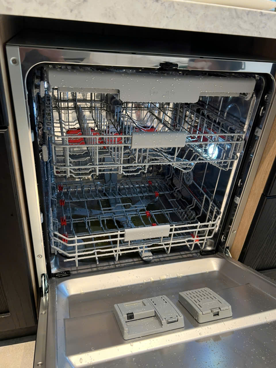 Lắp âm tủ nhìn gọn, sang hẳn gian bếp. Máy chạy êm, rửa xong bát đĩa khô ráo, cực tiện!