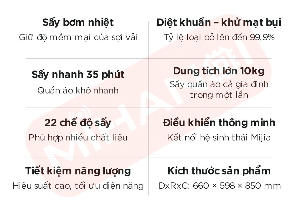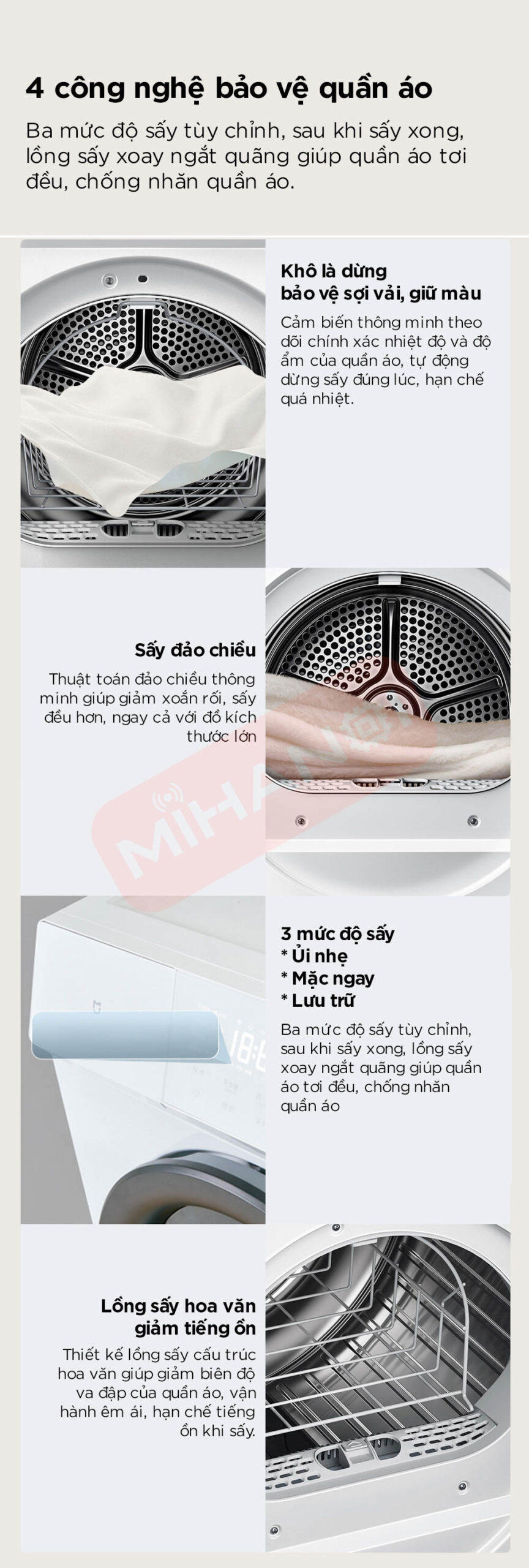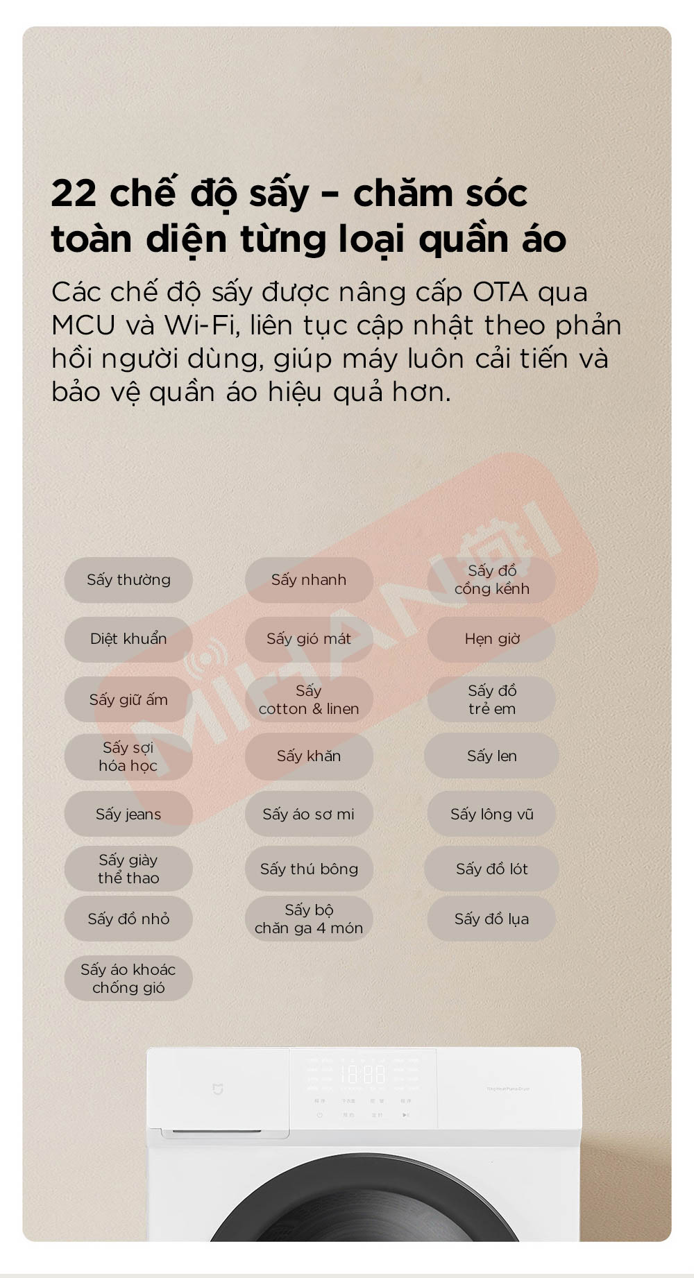 - Kết nối ứng dụng Mi Home, theo dõi trạng thái sấy và tùy chỉnh chương trình từ xa.
