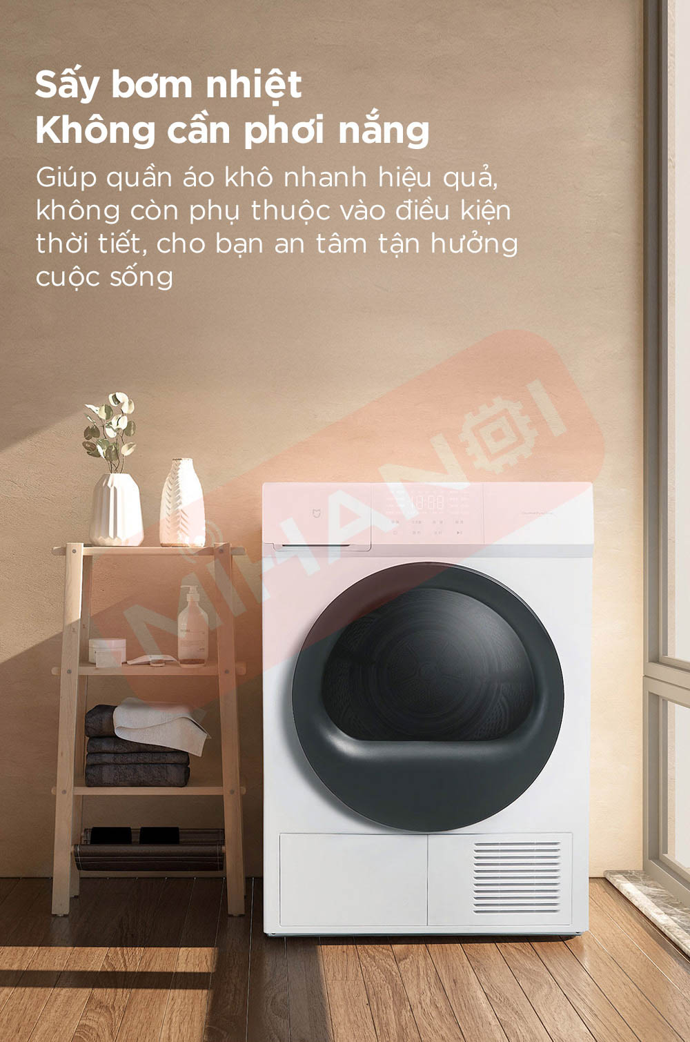 Máy sấy bơm nhiệt Heat Pump Xiaomi Mijia MJ101 10kg mang đến giải pháp sấy quần áo hiện đại với công nghệ sấy nhiệt độ thấp, giúp quần áo khô nhanh mà vẫn mềm mại tự nhiên. Dung tích lớn, 22 chế độ sấy chuyên biệt, khả năng diệt khuẩn – khử mạt bụi 99,9% cùng khả năng tiết kiệm điện hiệu quả, MJ101 là lựa chọn lý tưởng cho gia đình bận rộn và không gian sống hiện đại.