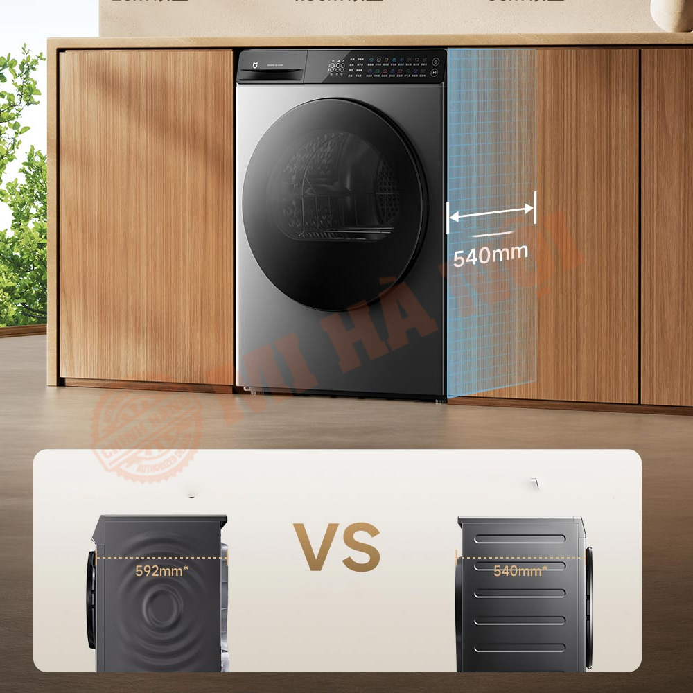 Máy sấy Xiaomi Mijia MJ103 10kg sở hữu thiết kế siêu mỏng với khả năng tích hợp hoàn hảo vào không gian nhỏ. Với độ dày thân máy giảm đáng kể, chỉ 540mm, máy được thiết kế vừa vặn với tủ mà không chiếm thêm diện tích, mang lại sự gọn gàng và thẩm mỹ cao. Máy còn trang bị công nghệ sấy bơm nhiệt tiên tiến, đảm bảo hiệu suất sấy hiệu quả và tiết kiệm năng lượng.