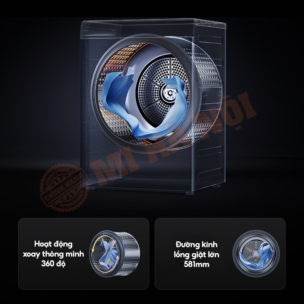 Máy sấy quần áo Xiaomi Mijia 10kg sử dụng công nghệ sấy thông minh tiến và lùi, giúp quần áo co giãn linh hoạt và giảm hiện tượng rối. Với thuật toán điều khiển chủ động, máy thực hiện chuyển động quay tiến và lùi 360°, đảm bảo quần áo được sấy khô đều mà không bị cuộn hay thắt nút. Đường kính nòng lớn 581mm cho phép quần áo di chuyển tự do trong thùng sấy, giảm tình trạng vón cục, đồng thời kéo dài hoàn toàn các loại quần áo lớn để sấy khô kỹ lưỡng.