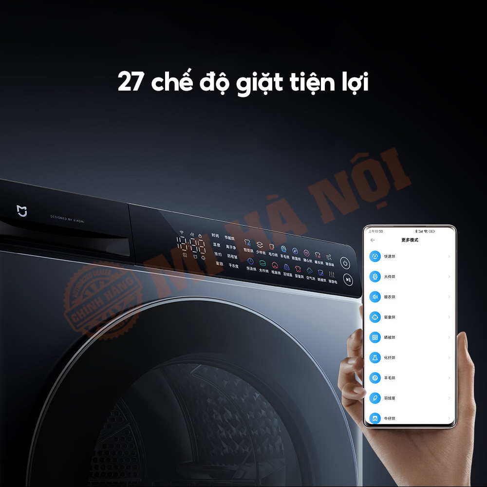 Điều khiển từ xa qua ứng dụng Mijia: Kết nối thông minh với máy giặt, cho phép lên lịch và điều khiển chương trình sấy từ xa.