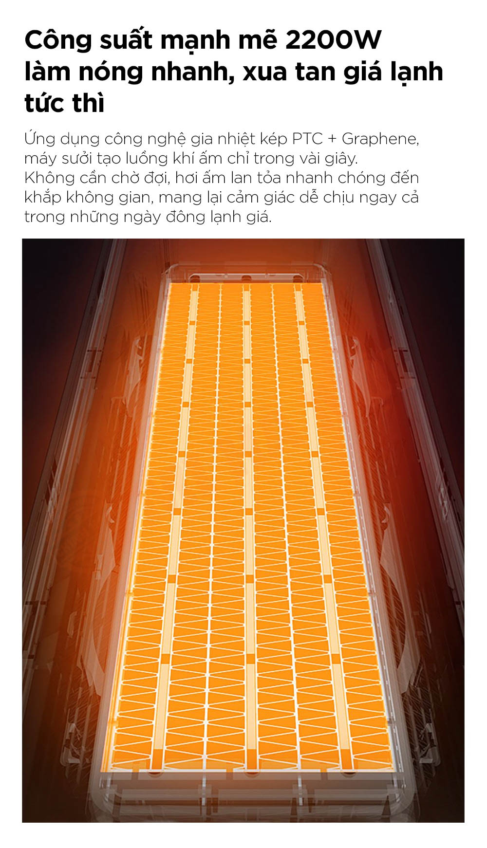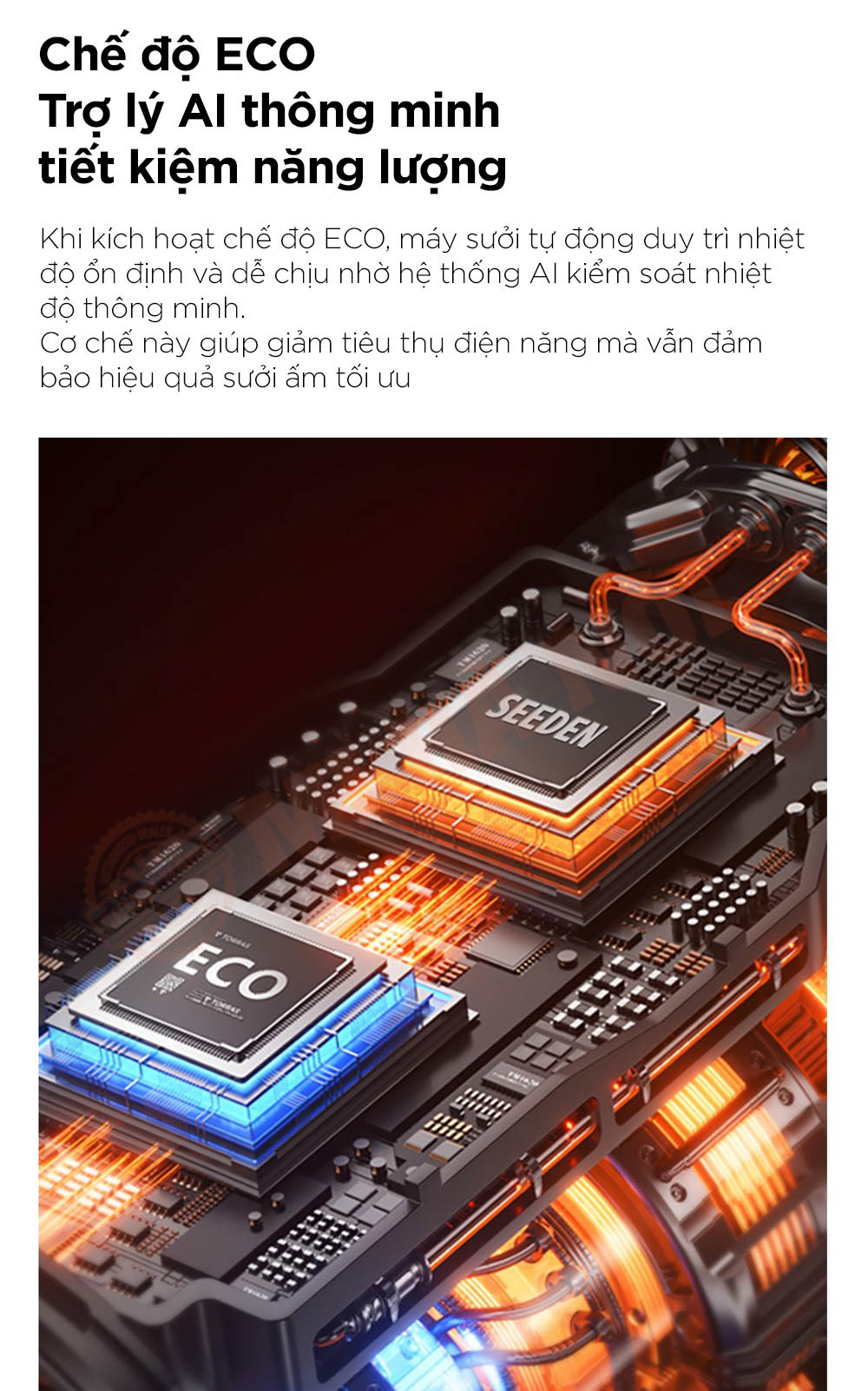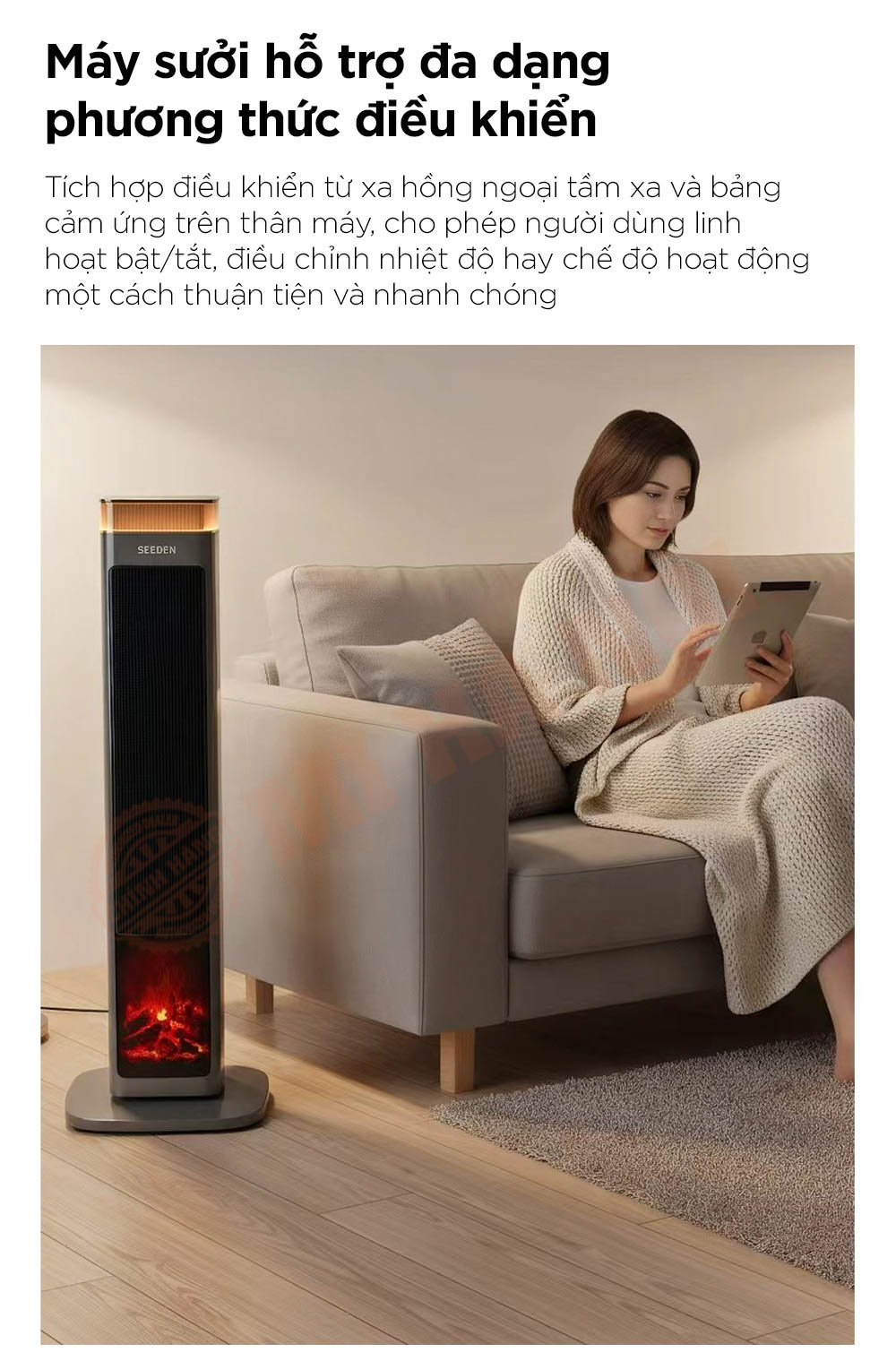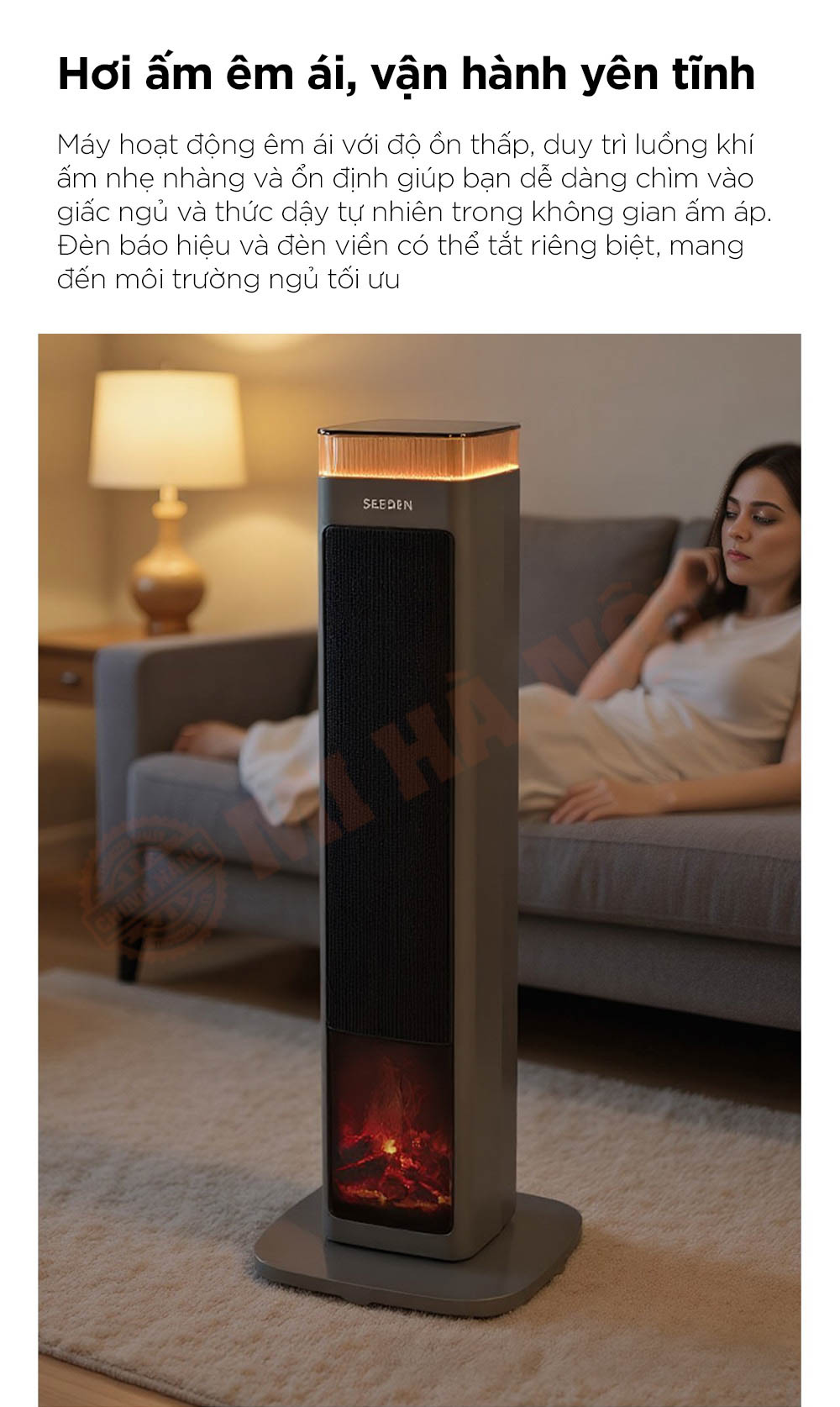 Máy sưởi SEEDEN Graphene nổi bật với công nghệ gia nhiệt kép PTC + Graphene, làm nóng tức thì và lan tỏa hơi ấm đều khắp không gian. Trang bị điều khiển AI thông minh, chế độ ECO tiết kiệm điện và khả năng dao động góc rộng 60° giúp phân bổ nhiệt hiệu quả. Thiết kế lò sưởi mô phỏng 5D cùng hệ thống bảo vệ an toàn đa lớp mang đến trải nghiệm ấm áp, tiện nghi và an toàn tuyệt đối cho người dùng.