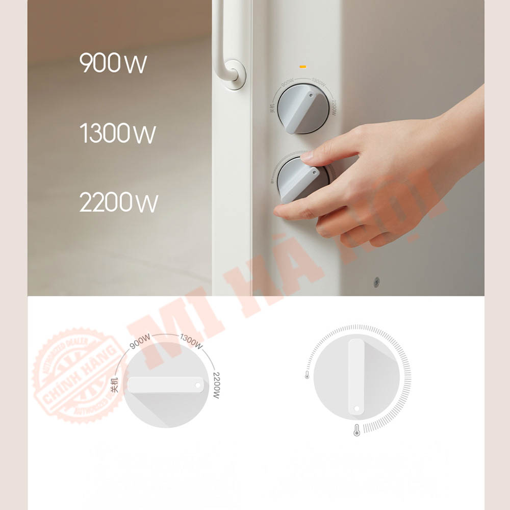 Máy sưởi Xiaomi Mijia KRDNQ04ZM cho phép bạn dễ dàng điều chỉnh nhiệt độ và công suất theo nhu cầu nhờ núm xoay tiện lợi. Với 3 mức công suất 900W, 1300W và 2200W, bạn có thể tăng nhiệt nhanh, sưởi ấm thoải mái hoặc làm nóng mạnh mẽ tùy từng tình huống.