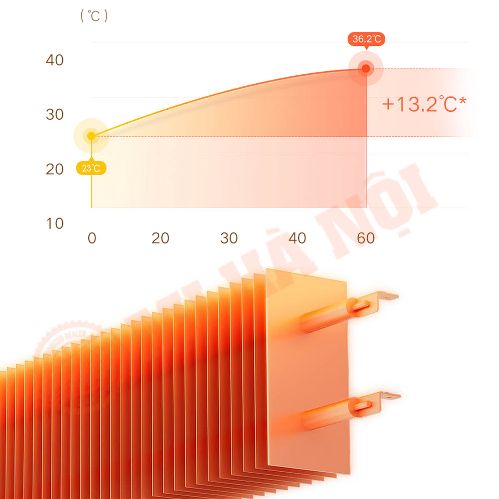 • Làm ấm nhanh chóng, chỉ 6 giây sau khi bật là cảm nhận được nhiệt độ ấm áp nhờ tấm nhôm tản nhiệt lớn.
