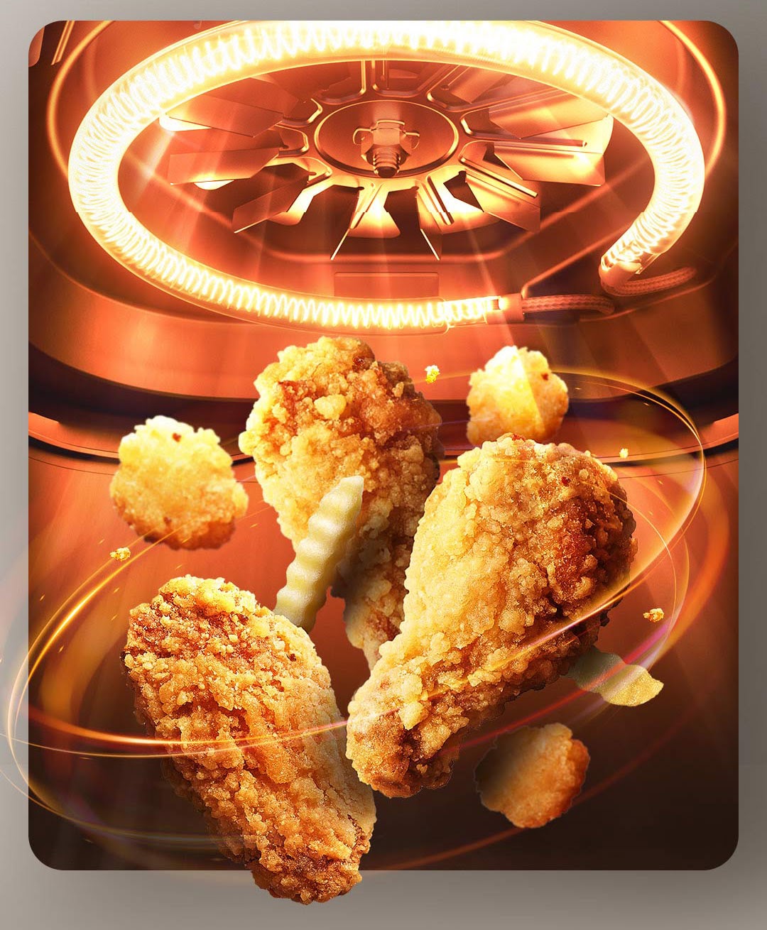 Cơ chế lưu thông không khí nóng 360°: Giúp món ăn chín đều và ít béo, giữ nguyên hương vị và chất dinh dưỡng.