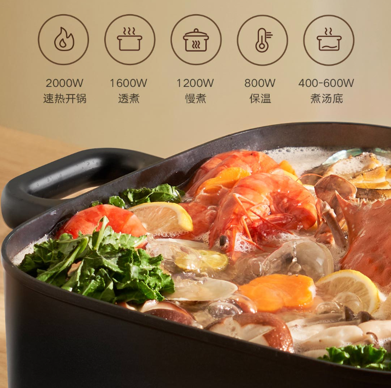 Ngoài việc nấu lẩu, nồi còn có khả năng chế biến nhiều loại món ăn khác nhau như chiên, xào, nướng hay hầm, đáp ứng đa dạng mọi nhu cầu ẩm thực. Với tính năng linh hoạt này, nồi Mijia MEH01 chắc chắn sẽ trở thành một trợ thủ đắc lực trong bếp của bạn, giúp bạn thoải mái sáng tạo và chế biến nhiều món ngon cho gia đình và bạn bè.