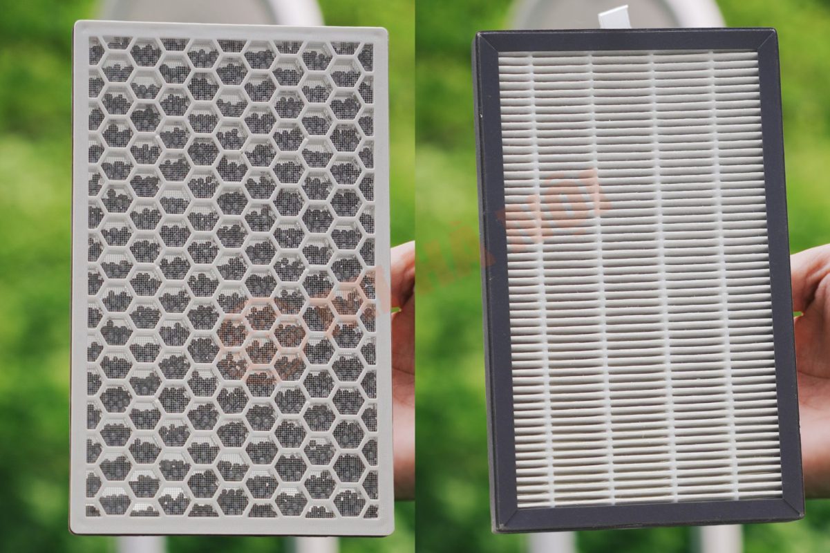 Lõi lọc than hoạt tính (trái) và lõi lọc HEPA (phải)