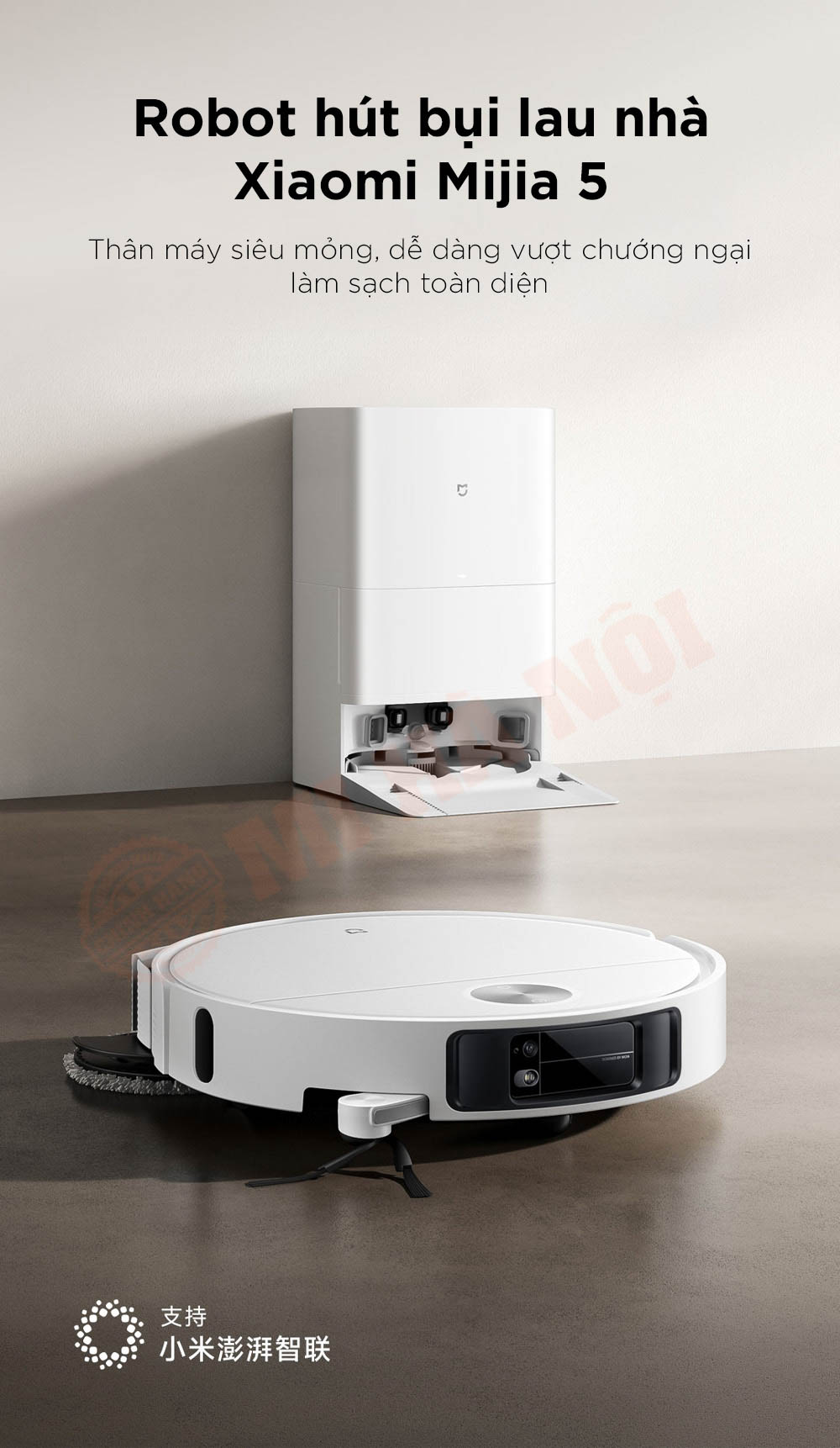 Robot hút bụi lau nhà Xiaomi Mijia 5 – thế hệ mới với thiết kế siêu mỏng chỉ 7.9cm, lực hút 23.000Pa và AI nhận diện hơn 130 loại vật cản, mang đến trải nghiệm làm sạch toàn diện và thông minh hơn bao giờ hết. Từ hút bụi, lau sàn đến tự giặt giẻ nước nóng 80°C, tất cả đều được tự động hóa – giúp bạn rảnh tay hoàn toàn mà nhà vẫn sạch bóng.