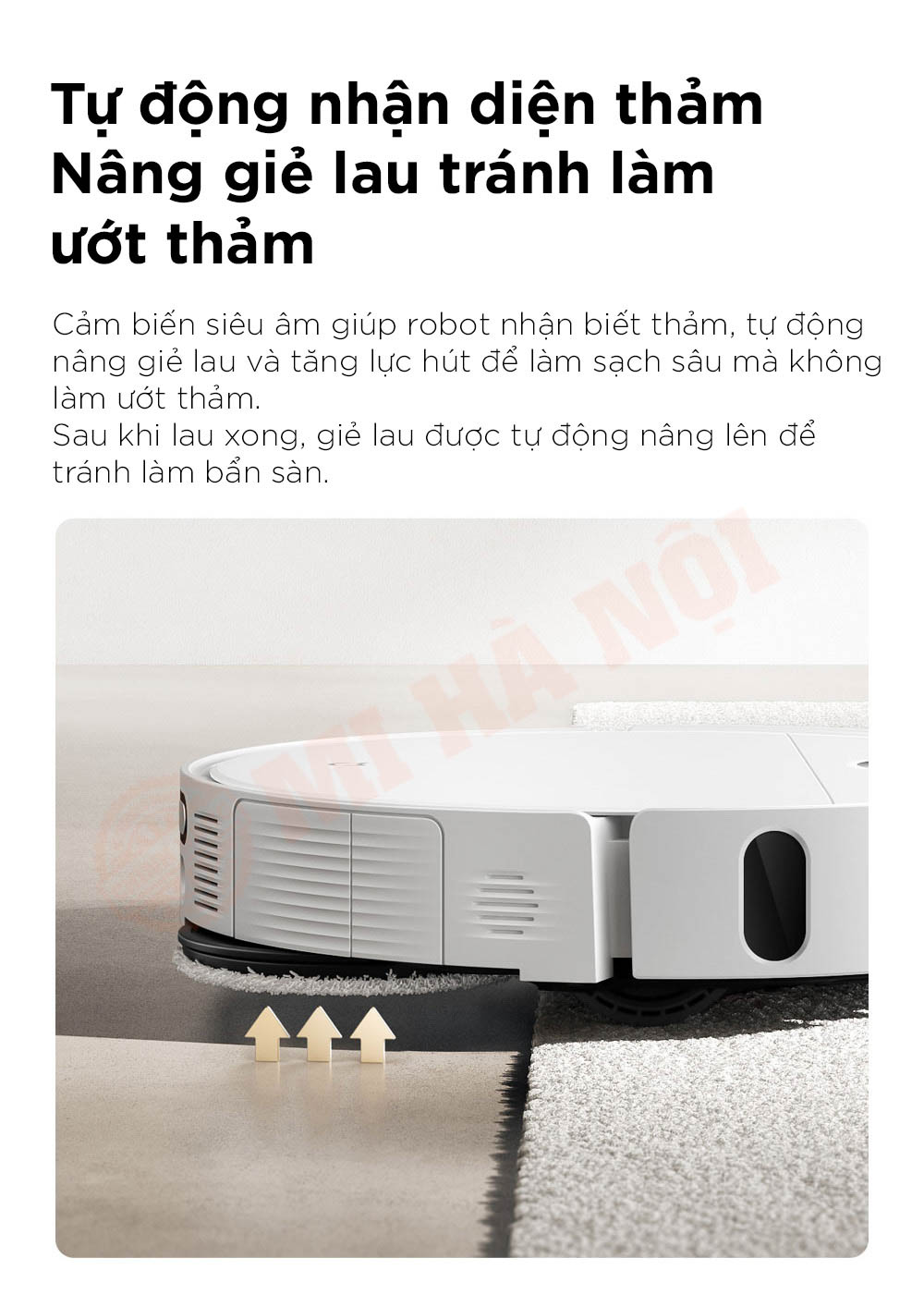 - Tự động nâng giẻ lau, tăng lực hút, tránh làm ướt thảm.