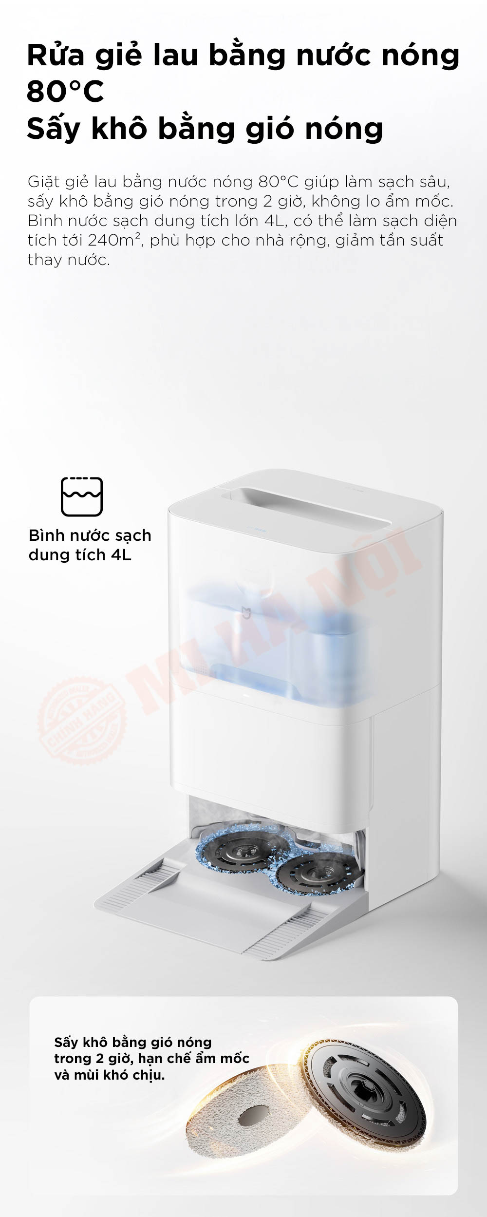 - Dock sạc tự làm sạch, tự động xả nước bẩn, khử mùi hiệu quả.