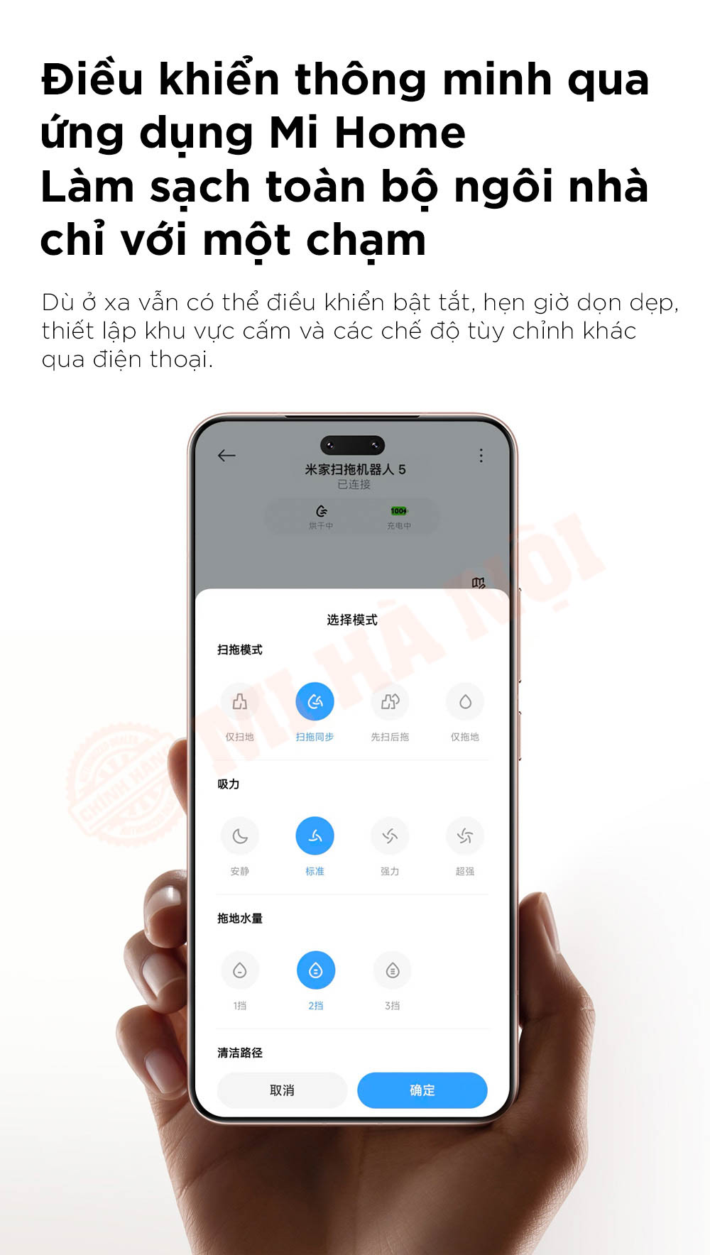 - Điều khiển qua ứng dụng Mi Home – Hẹn giờ, đặt vùng cấm, điều khiển từ xa dễ dàng.
