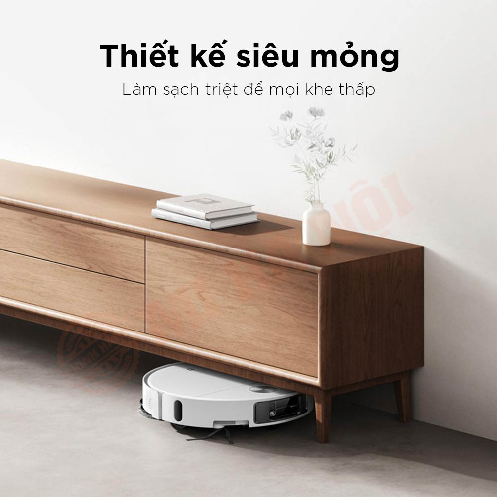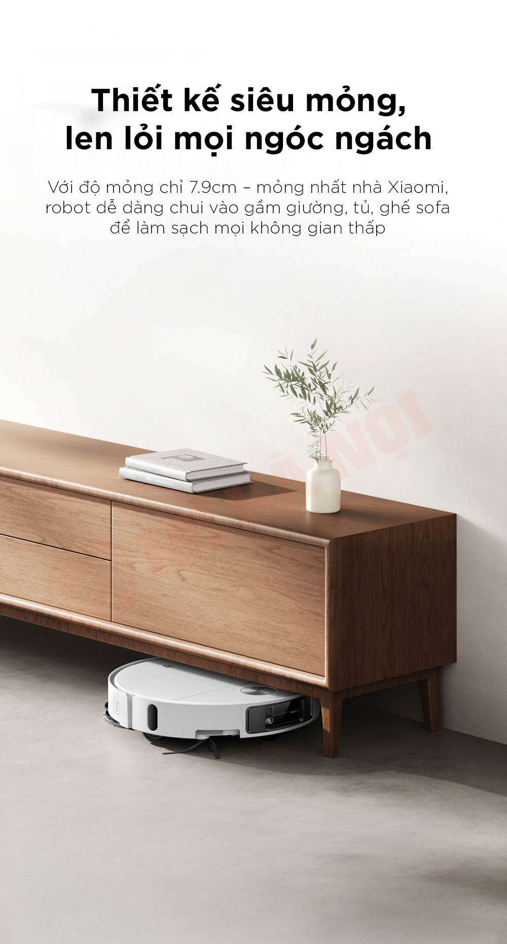 - Thiết kế siêu mỏng 7.9cm – Dễ dàng chui vào gầm tủ, giường, sofa, làm sạch toàn diện mọi ngóc ngách.