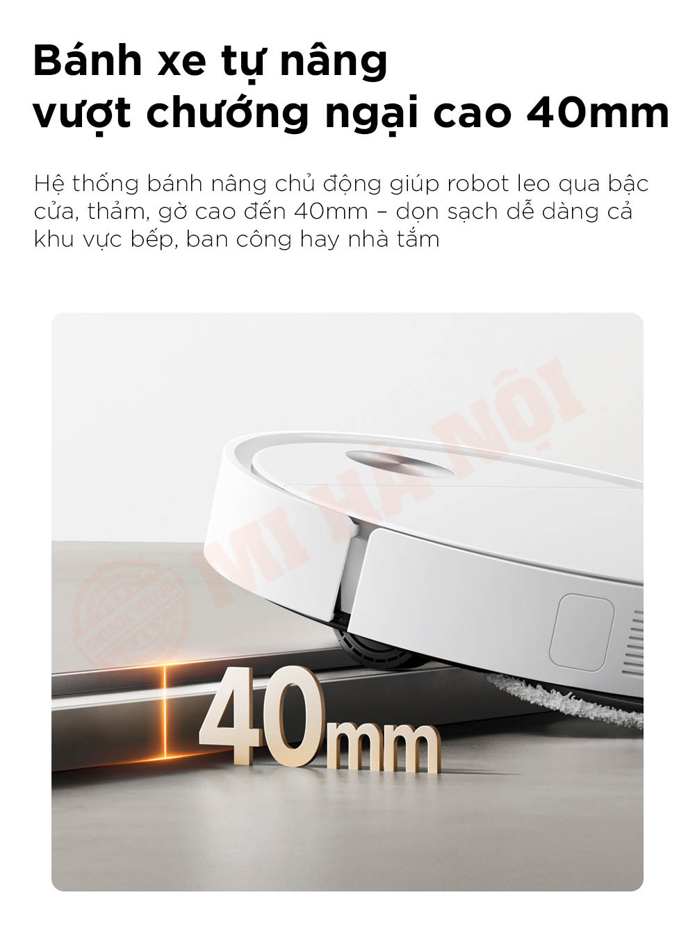 - Vượt vật cản cao đến 40mm – Leo bậc, thảm, gờ cửa mượt mà không kẹt.