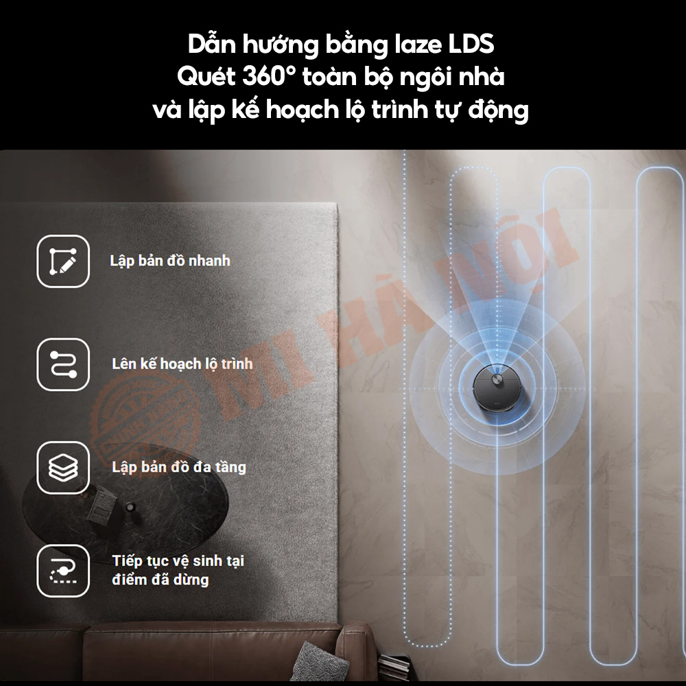 Với công nghệ dẫn hướng laze LDS tiên tiến, robot X20 Max sẽ thực hiện quét 360° môi trường trong nhà bạn, nhanh chóng lập bản đồ khu vực và lập kế hoạch lộ trình làm sạch một cách thông minh.