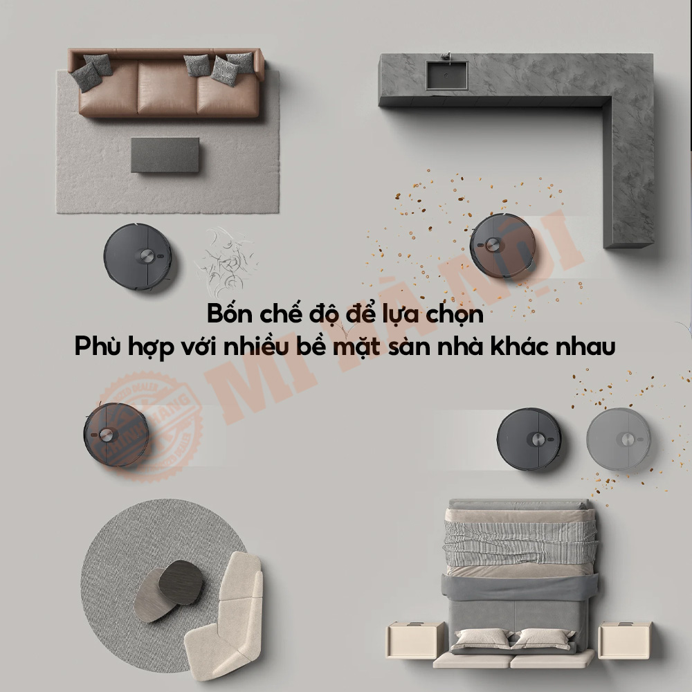 Robot Xiaomi cung cấp bốn chế độ làm sạch, bao gồm chế độ hút bụi trước lau sau, phù hợp hơn với thói quen làm sạch của hầu hết các hộ gia đình. Với nhiều mức cài đặt lực hút và dòng nước có thể điều chỉnh, robot có thể thích ứng với nhiều nhu cầu làm sạch khác nhau.