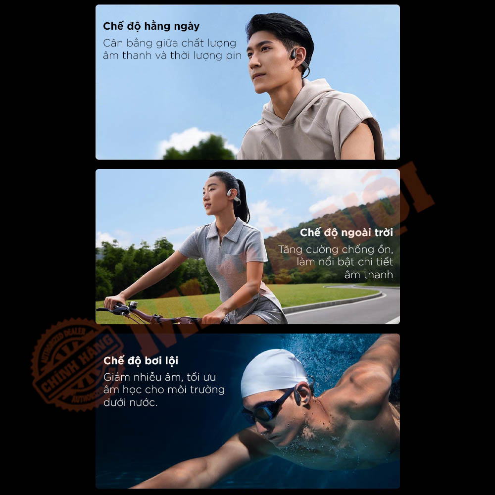 Trang bị ba chế độ âm thanh tùy chỉnh: Thường ngày, Ngoài trời và Bơi lội, mang lại âm thanh phù hợp mọi môi trường.