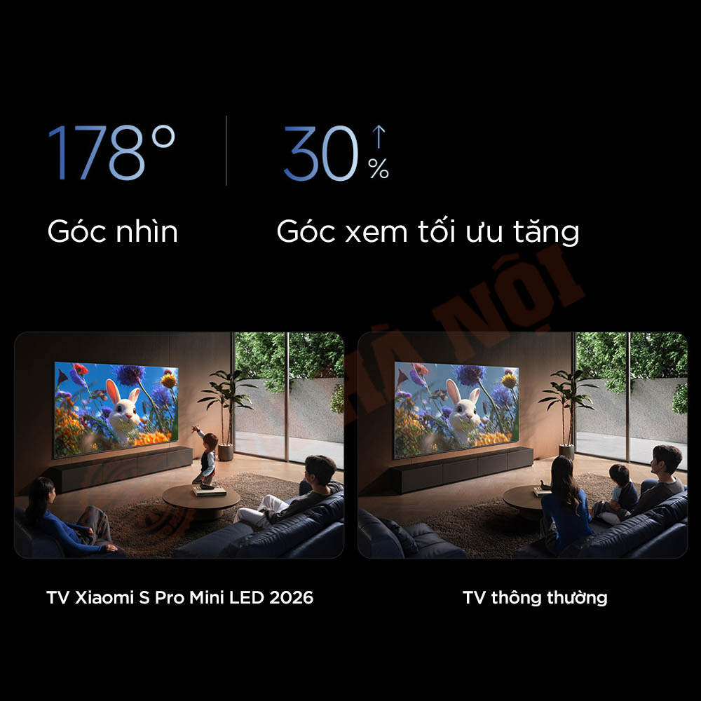Tivi Xiaomi S Pro 65 Mini LED 2026 sở hữu màn hình WHVA góc nhìn rộng 178°, cải thiện 30% so với thế hệ trước, giữ trọn màu sắc chân thực ở mọi góc độ.