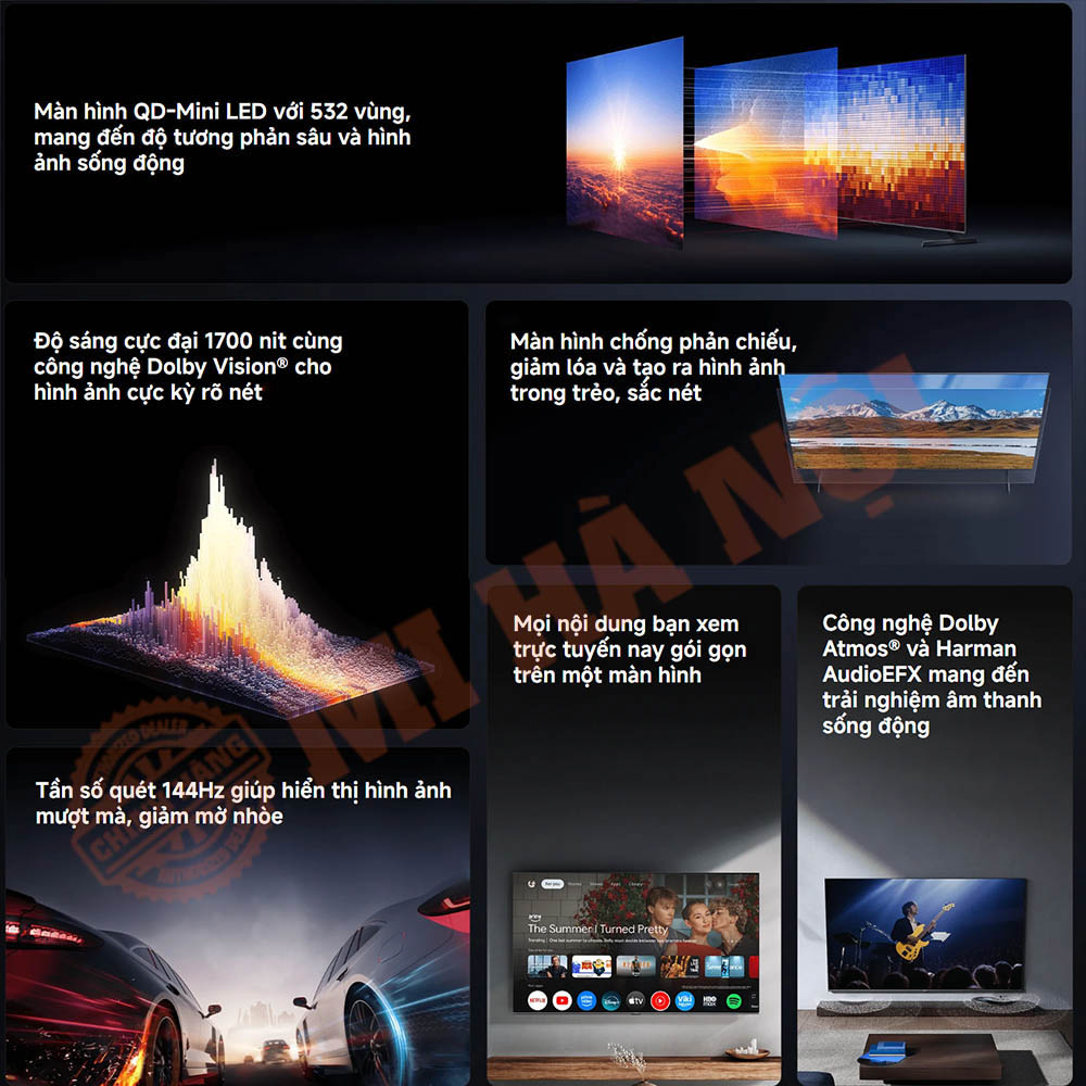 Tivi Xiaomi S Pro Mini LED 65 inch – Bản Quốc Tế sở hữu công nghệ màn hình Mini LED hiện đại với 532 vùng đèn nền độc lập, mang đến khả năng kiểm soát ánh sáng và độ tối chính xác đến từng điểm ảnh. Nhờ đó, những cảnh tối trở nên rõ nét, trong khi khung hình sáng vẫn rực rỡ và giữ được chiều sâu tự nhiên.