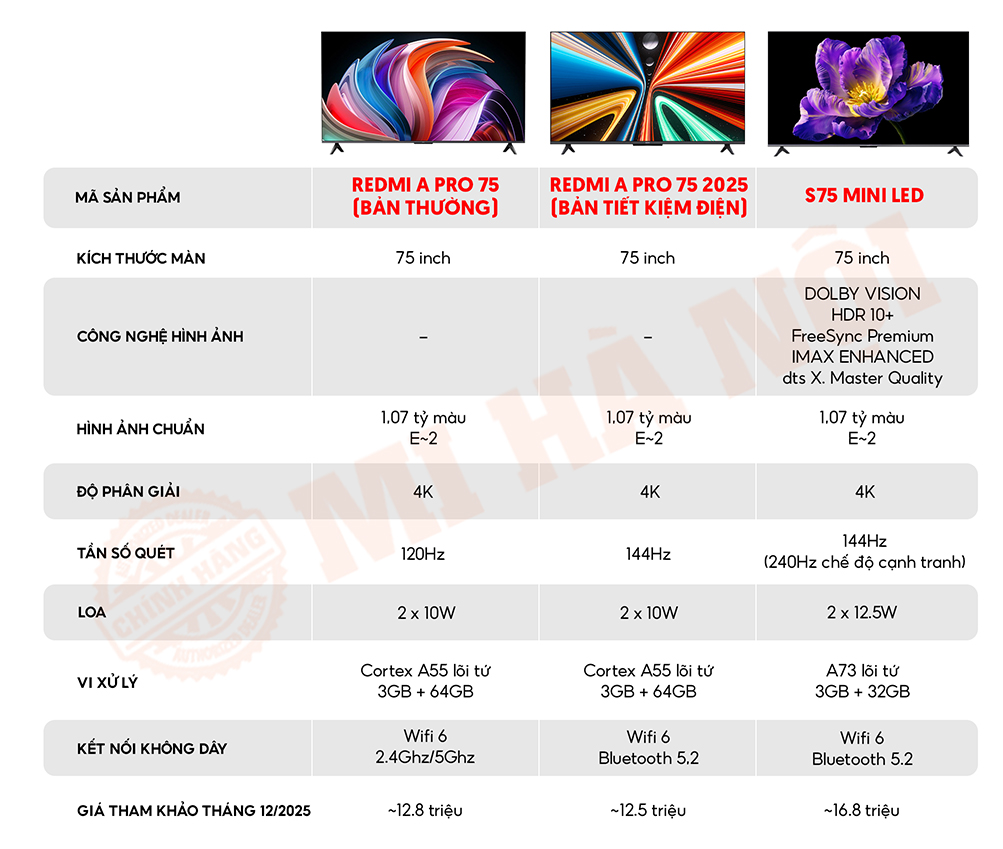 Bảng so sánh các mẫu Tivi 75 inch nổi bật tại Mi Hà Nội