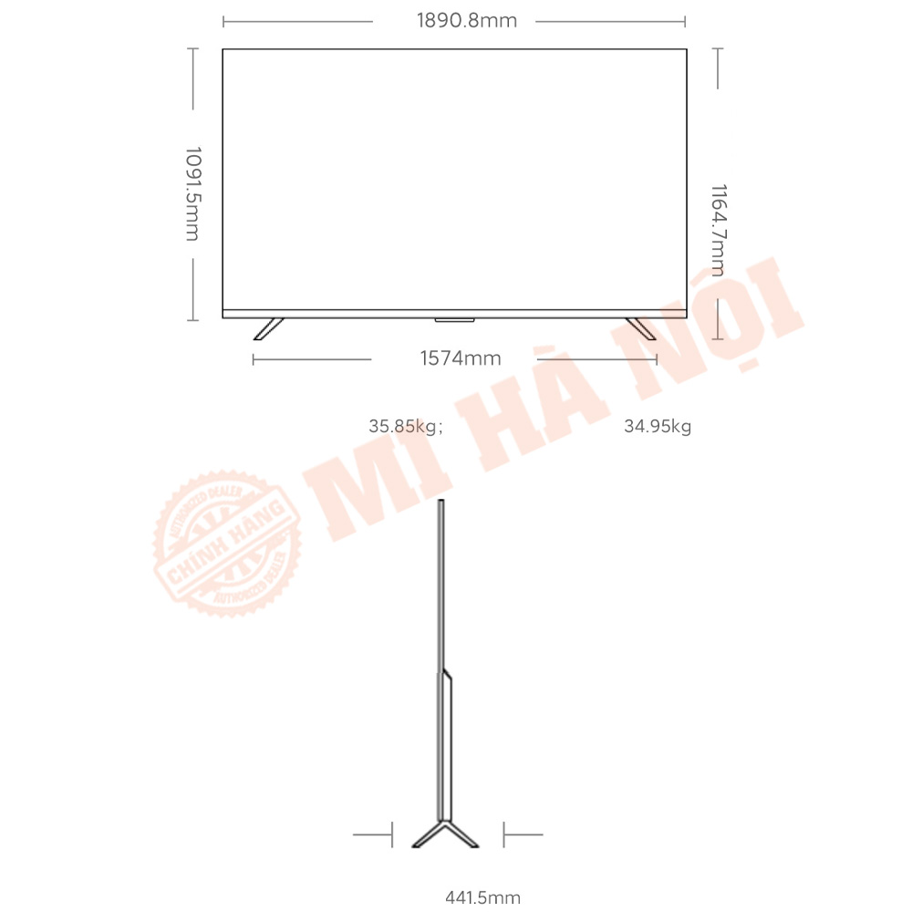 Kích thước & trọng lượng mỏng nhẹ của tivi Xiaomi S85 Mini LED
