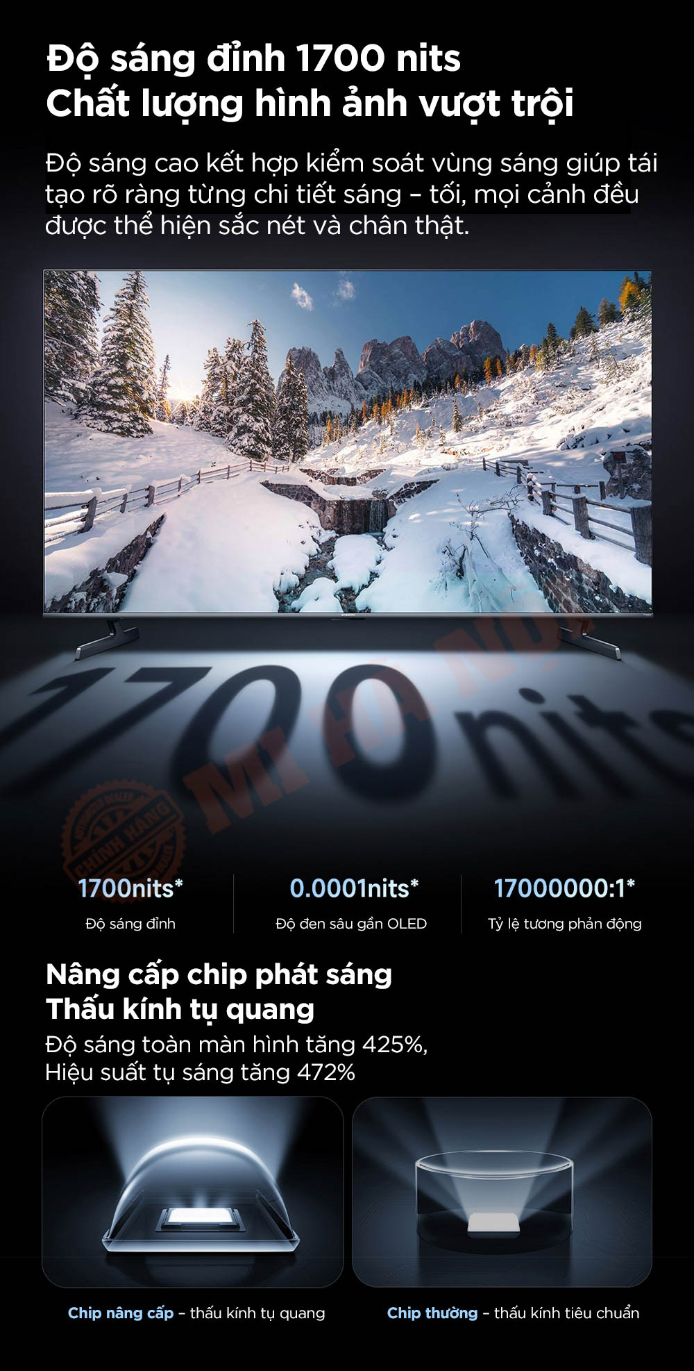 - Độ sáng đỉnh 1700 nits, hiển thị rõ chi tiết cả cảnh tối và cảnh sáng.