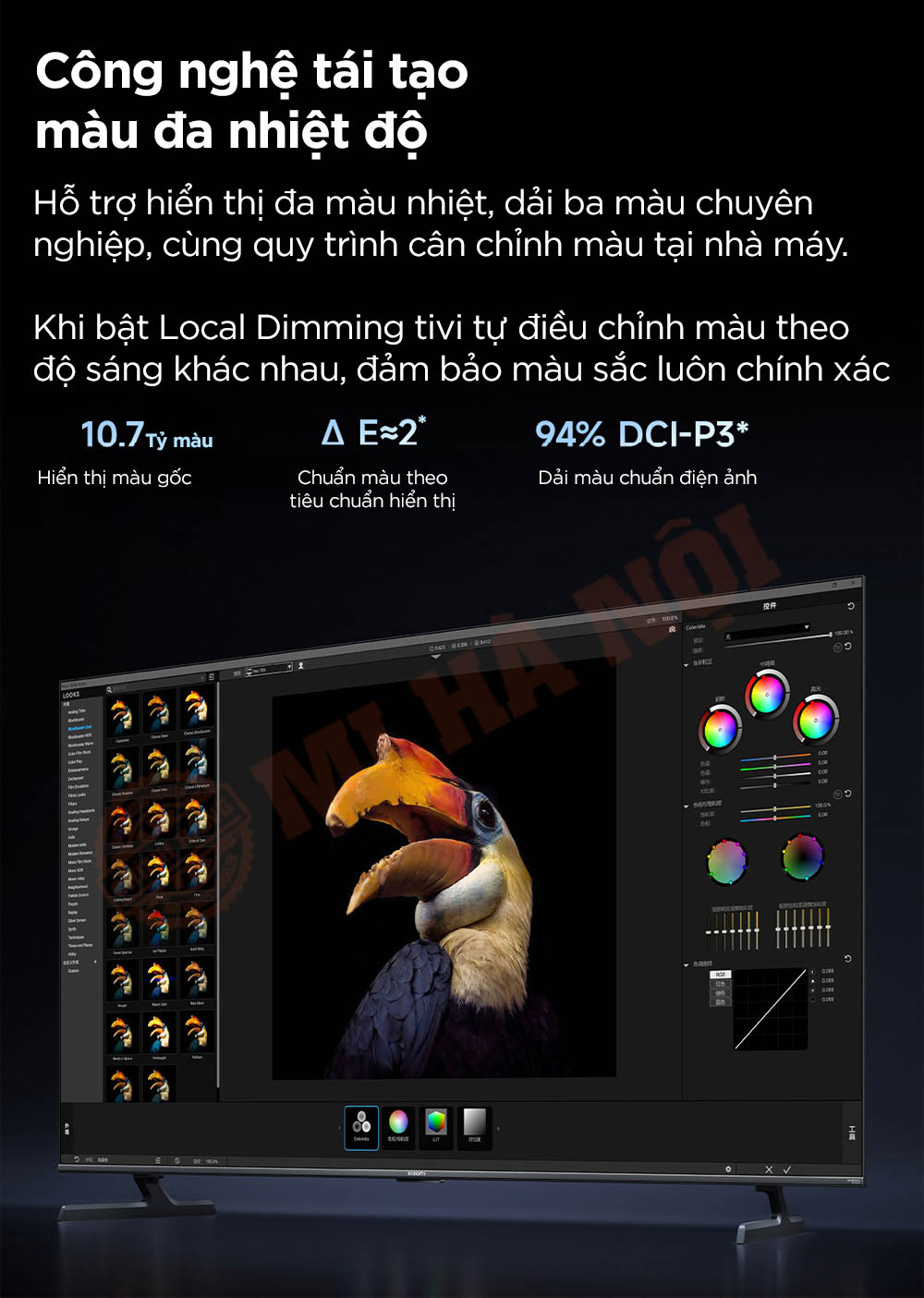 - Tái tạo màu đa nhiệt độ với 10.7 tỷ màu, ΔE ≈ 2°, 94% DCI-P3.
