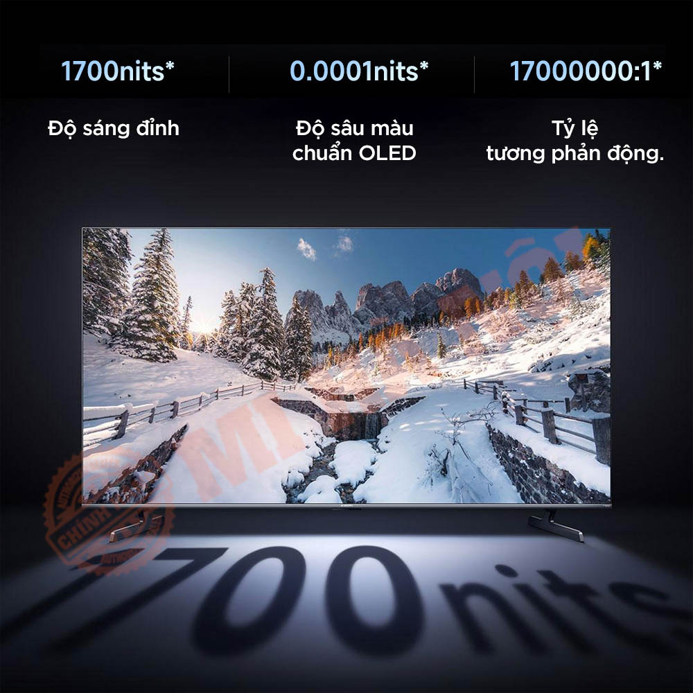 1092 vùng Mini LED, độ sáng đỉnh 1700 nits, hỗ trợ chuẩn HDR10+ và Dolby Vision.