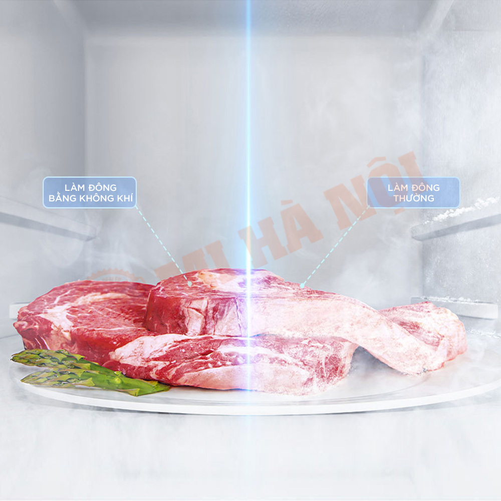 • Công nghệ làm mát bằng không khí 360 độ, giúp thực phẩm tươi lâu mà không bị đóng băng