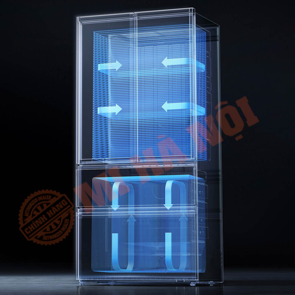 Tủ lạnh Xiaomi Mijia 560L Pro được trang bị hệ thống làm lạnh kép Pro, với hai bộ bay hơi và hai quạt lưu thông không khí hoạt động độc lập cho ngăn mát và ngăn đông. Nhờ cơ chế tách biệt hoàn toàn, luồng khí lạnh được phân bổ chính xác theo từng khu vực, giúp nhiệt độ ổn định và tránh lẫn mùi giữa các loại thực phẩm. Cấu trúc kép này không chỉ tăng hiệu quả làm lạnh mà còn giúp thực phẩm được bảo quản đúng cách – ngăn mát giữ độ tươi, ngăn đông khóa lạnh nhanh, duy trì chất lượng và hương vị nguyên vẹn trong thời gian dài.