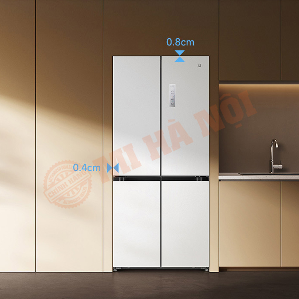 Tủ lạnh Xiaomi Mijia 508L nổi bật với thiết kế siêu mỏng, thân máy chỉ 60cm và mặt trước tủ hẹp 85.2cm. Nhờ vào việc giảm 12.8% kích thước thân tủ và 19.4% độ dày thân cửa, tủ lạnh này tiết kiệm diện tích tới 36.7% so với các mẫu tủ lạnh cùng dung tích. Điều này cho phép người dùng lắp đặt kiểu âm tường, tận dụng tối đa không gian bếp.