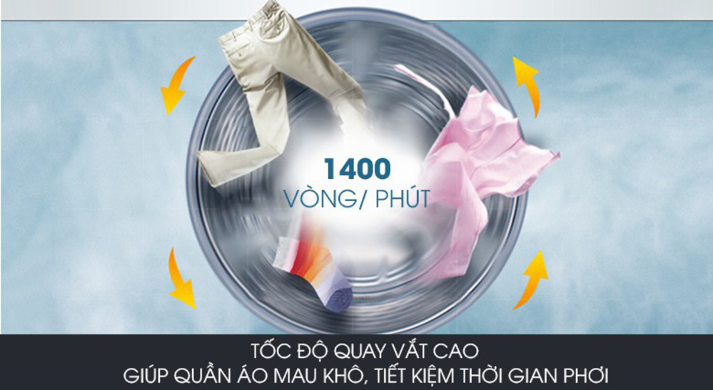Nhờ tốc độ quay mạnh mẽ, lượng nước còn lại trong quần áo sau khi giặt được giảm đáng kể, giúp rút ngắn thời gian phơi và sấy, mang lại sự tiện lợi tối đa cho người dùng.