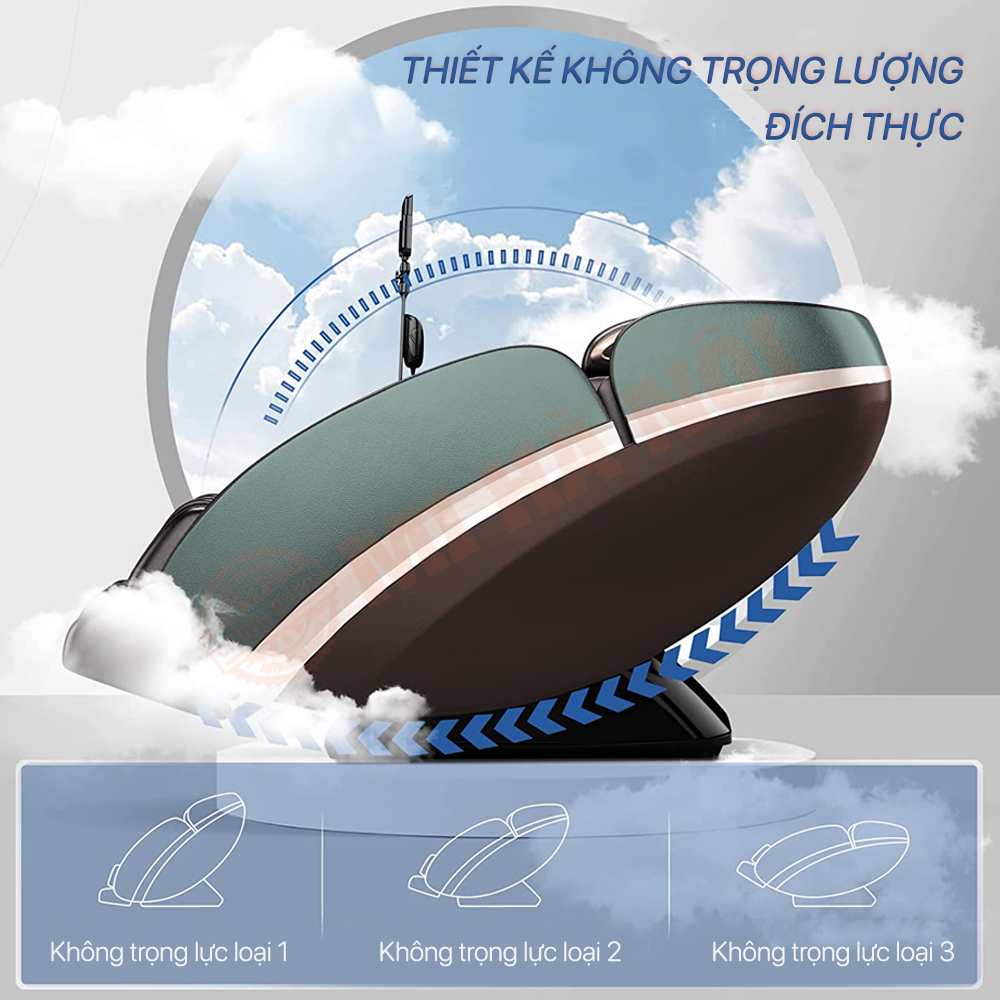 Tính năng chườm nóng mang đến cảm giác ấm áp, làm dịu các vùng đau mỏi, trong khi chế độ không trọng lực 3 cấp độ giúp thư giãn tối đa như đang lơ lửng trong không trung.