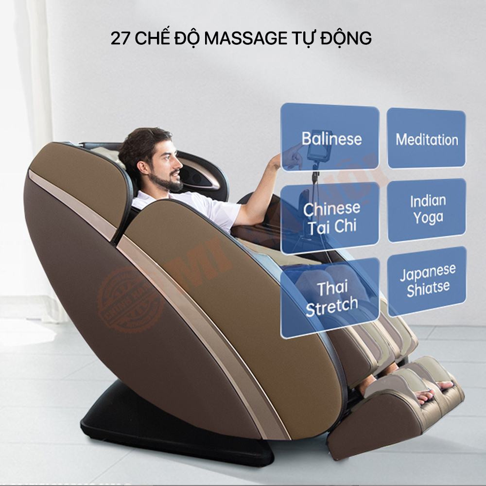 Với 11 kỹ thuật massage đa dạng và 29 chương trình massage được thiết kế sẵn, người dùng có thể tùy chỉnh massage theo nhu cầu và mong muốn cá nhân. Chế độ massage nhiệt graphene giúp thư giãn cơ thể, đồng thời tăng khả năng lưu thông máu, mang lại cảm giác sảng khoái và thoải mái.